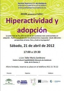 Como avanzábamos hace un par de días, la Asociación AFAM (Asociación de Familias Adoptivas Multiétnicas) ya ha publicado todos los detalles de su próximo taller sobre Hiperactividad y Adopción. Aquí tenéis la información: