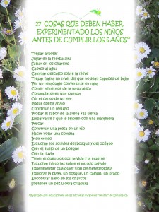 A continuación una lista de las 27 cosas que todos los niños hijos deberían haber experimentado antes de los 6 años. Está redactada por unos educadores de las escuelas infantiles verdes danesas.