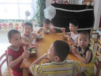 Después de la visita, fuimos a comer con la Directora y el personal del orfanato. Más tarde, nos juntamos en la cena con el grupo de Yueyang. Habían vivido también momentos muy emocionantes, similares a los nuestros pues el edificio de la casa de bienestar social era otro, y los niños que habían conocido eran mayores y con discapacidades, pero pese al impacto del momento todos los niños habían reaccionado muy bien.