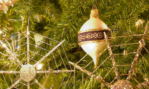 La cena de Nochebuena en Ucrania consta de 12 platos sin carne que incluyen kutia (un pudin de trigo dulce), borscht (sopa), pescado, crepes, varenyky (empanadillas), holubtsi (rollitos de repollo) y fruta cocinada. Suele decorar la mesa un tallo de trigo llamado didukh, como símbolo de la cosecha y como homenaje a los ancestros. La felicitación navideña tradicional de Ucrania es la Chrystos Razhdayetsya. Los adornos típicos tienen forma de arañas, telas de araña, cunas, estrellas, como móviles o guirnaldas, porque según cuenta la leyenda, hubo una familia muy pobre que no tenía nada para decorar y por la noche, las arañas les hicieron unas preciosas decoraciones navideñas en su árbol.