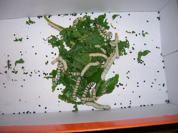 Este año yo también he tenido gusanos de seda. Recomiendo a todos los que tienen niños que algún año se hagan con estas orugas porque me parece un maravilloso ejemplo para los niños de la forma en que las orugas se convierten en mariposas.